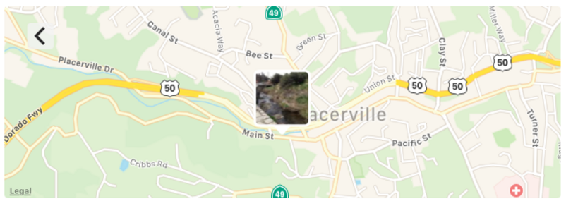 Located from upper Main Street to the El Dorado Trail, Hangtown Creek confluence with Randolph Creek to the east and west entrance gardens to Broadway