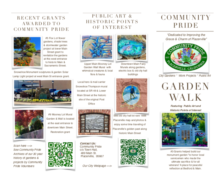 Thank you for visiting Community Pride Archives, Placerville Garden Walk with Public Art and Historic Points of Interest and Plant Palette Database. If you have any questions